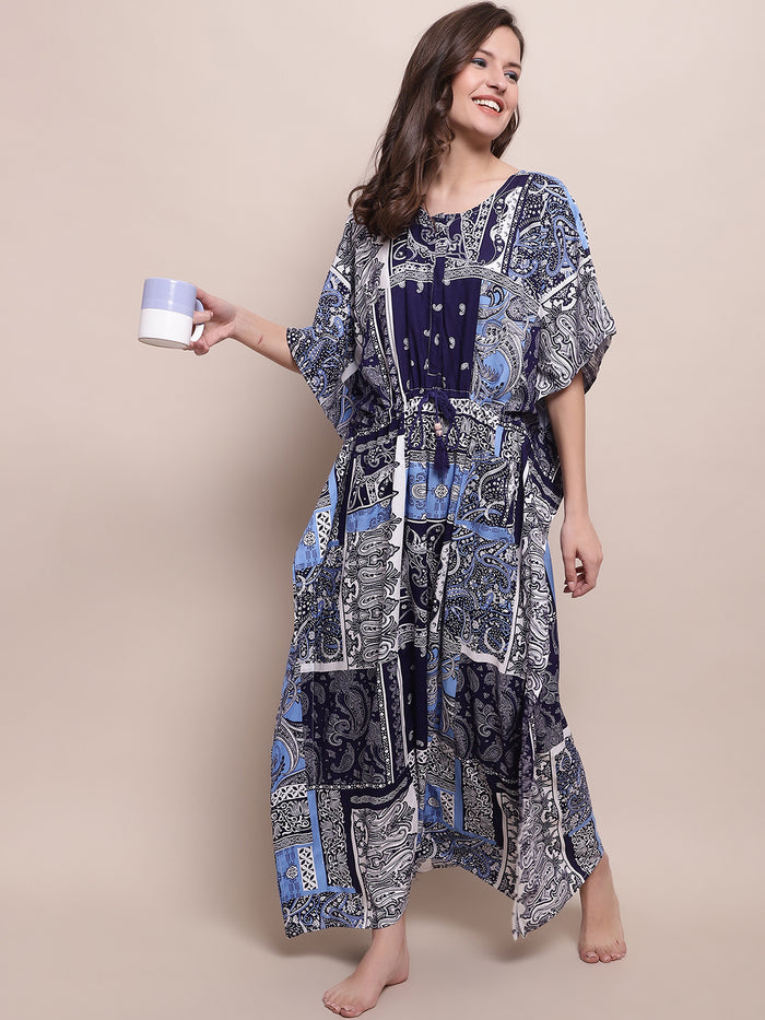 With its soothing shades of blue and floral print, this kaftan night suit exudes a cool and relaxing vibe that's perfect for the season. Indulge your bestie with the perfect gift of style and comfort that will leave her feeling truly appreciated.